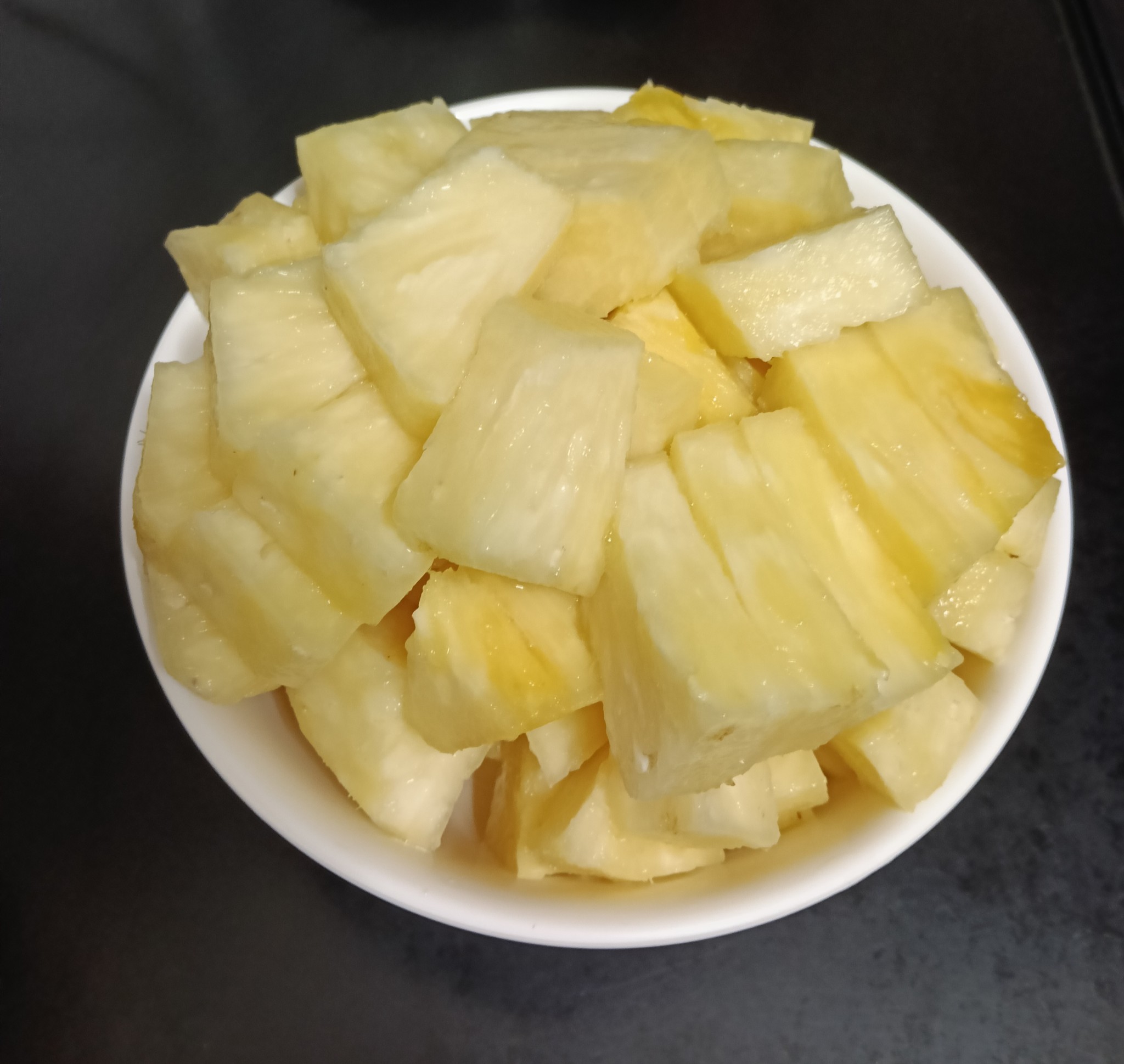 ปอกสับปะรด และหั่นเป็นชิ้นพอดีคำ