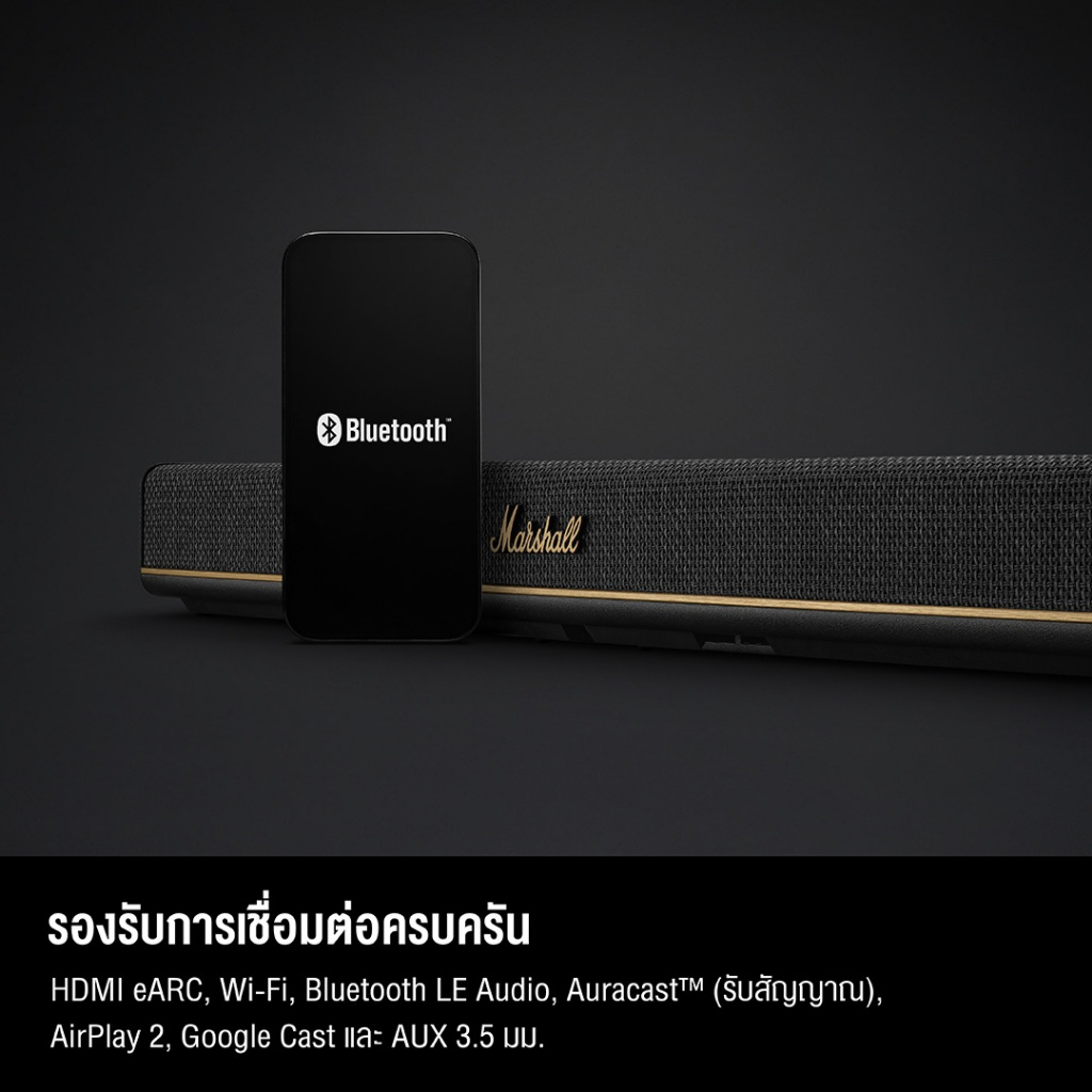 หาซาวด์บาร์ไว้ดูหนังที่บ้านอยู่พอดี เลยลองเปลี่ยนจากลำโพงทีวีธรรมดามาใช้ Marshall Heston 60 soundbar รุ่นใหม่จาก Marshall ดีไซน์แท่งยาวสีดำคลาสสิก เสียงโอบล้อมชัดทุกมิติด้วยระบบ Dolby Atmos และ DTS:X ดูหนังแอ็กชันแล้วได้ยินทั้งเสียงระเบิดและเสียงกระซิบแยกกันชัดเจน เชื่อมต่อทีวีผ่าน HDMI eARC ได้ง่าย เปิดโหมดเสียงให้เหมาะกับหนังหรือเพลงที่ดูอยู่ แถมมี Wi-Fi, Bluetooth LE Audio และ Auracast ให้เลือกใช้งานครบในแท่งเดียว 🎬