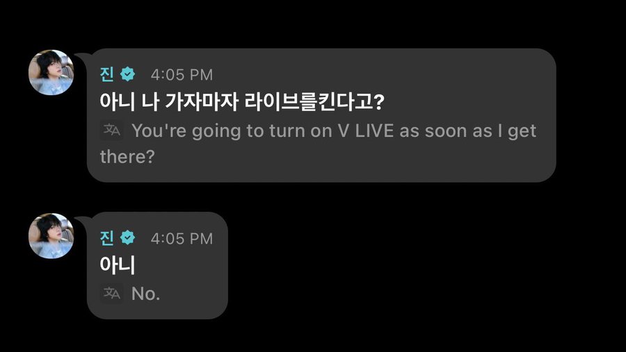 เมื่อวานนี้ RM และ จีมิน เปิด live หลังซ้อมเต้นเสร็จ แล้วปรากฏว่า มีคนดูอยู่ใน live แค่ 1 คน นัมจุนก็เลยบอกว่า ถึงเวลายุบวงแล้วมั้ง ไม่มีคนมาดู BTS แล้วเนี่ย และ คน 1 คน ที่ดู live อยู่นั้นก็คือ คิมซอกจิน นั่นเอง คอมเมนท์ live ของเมมเบอร์ด้วยความเร็วกว่าแสงอีกอ่ะ
