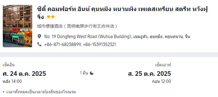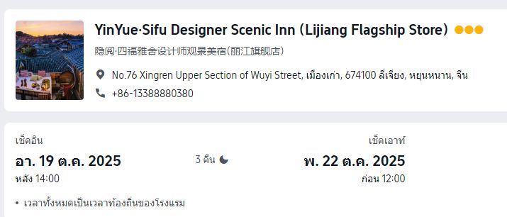 โรงแรมนี้ในเมืองเก่าลี่เจียง ถ้าพัก 3 คืน/ห้อง จะมีรถรับหรือส่งฟรีสถานีรถไฟ1ครั้ง เพราะฉะนั้นก่อนเดินทาง 1 วันให้ติดต่อที่พักทาง We Chat ถ้าที่พักไม่รับแอด ให้ติดต่อทางช่องทางที่จองโรงแรมมา ของเราส่งข้อความไปใน trip.com เขาก็ตอบกลับ