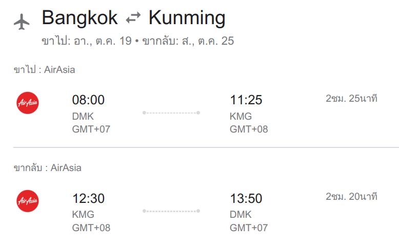 ตั๋วเครื่องบิน Air Asia ดอนเมือง-คุนหมิง ไปกลับ รวมน้ำหนักกระเป๋า 20กก. 7463 บาท