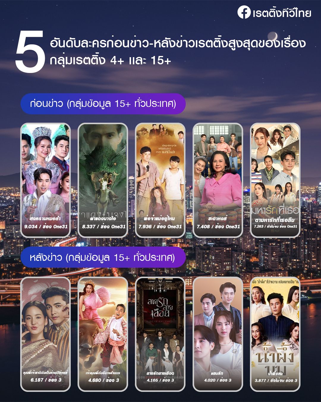 5 อันดับ เรตติ้งละครก่อนข่าว-หลังข่าว สูงสุดของเรื่อง ปี 2568 (21/11/68) ช่องOne31 ครองละครเย็น ช่อง3 ครองละครไพร์ทไทม์
