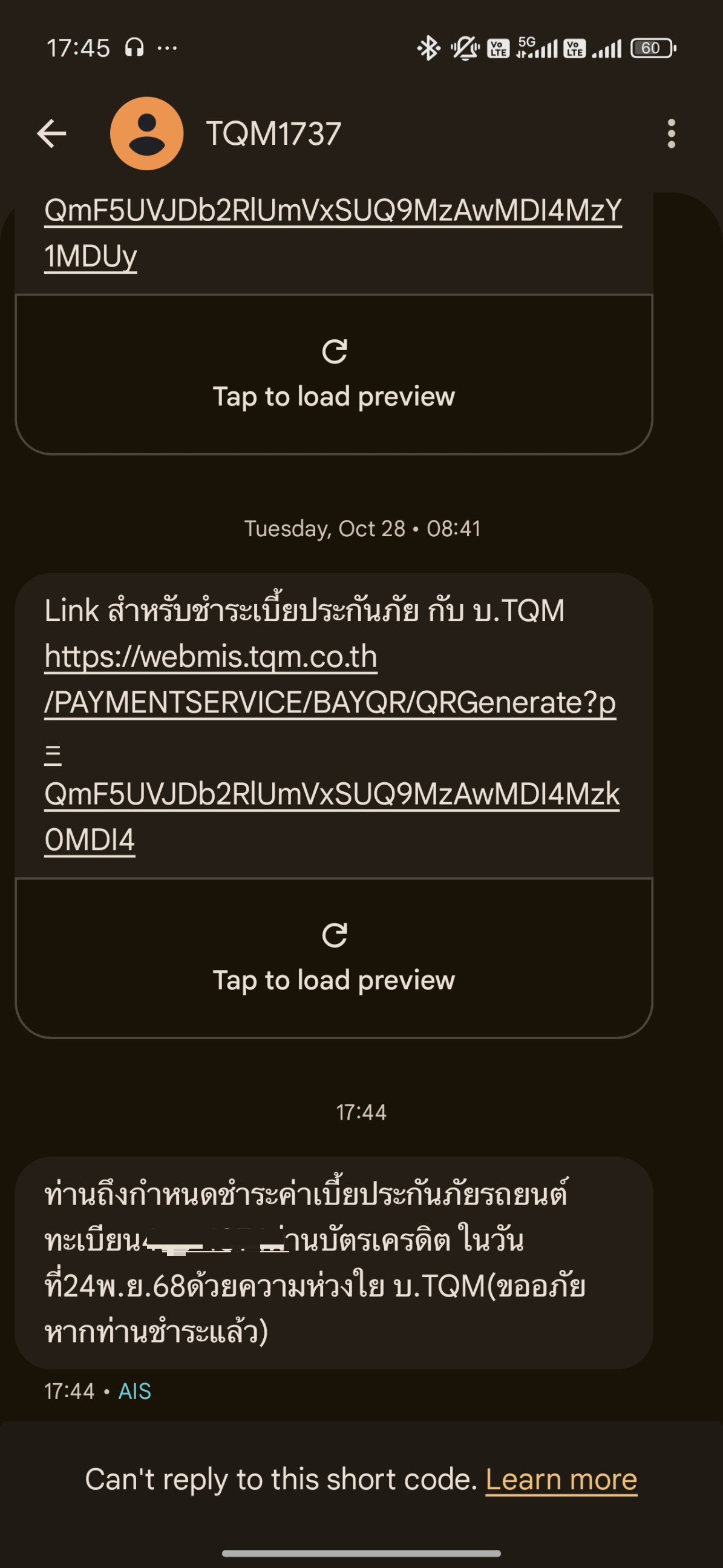 โทรมาขายประกัน แล้วพอปฏิเสธไปว่าจะไม่ทำ ก็ส่งข้อความมาให้จ่ายตังอยู่ได้ จะขายรถอยู่แล้ว แล้วโทรติดต่อคอลเซนเตอร์ไม่ติดด้วยนะ จะบ้าตาย
