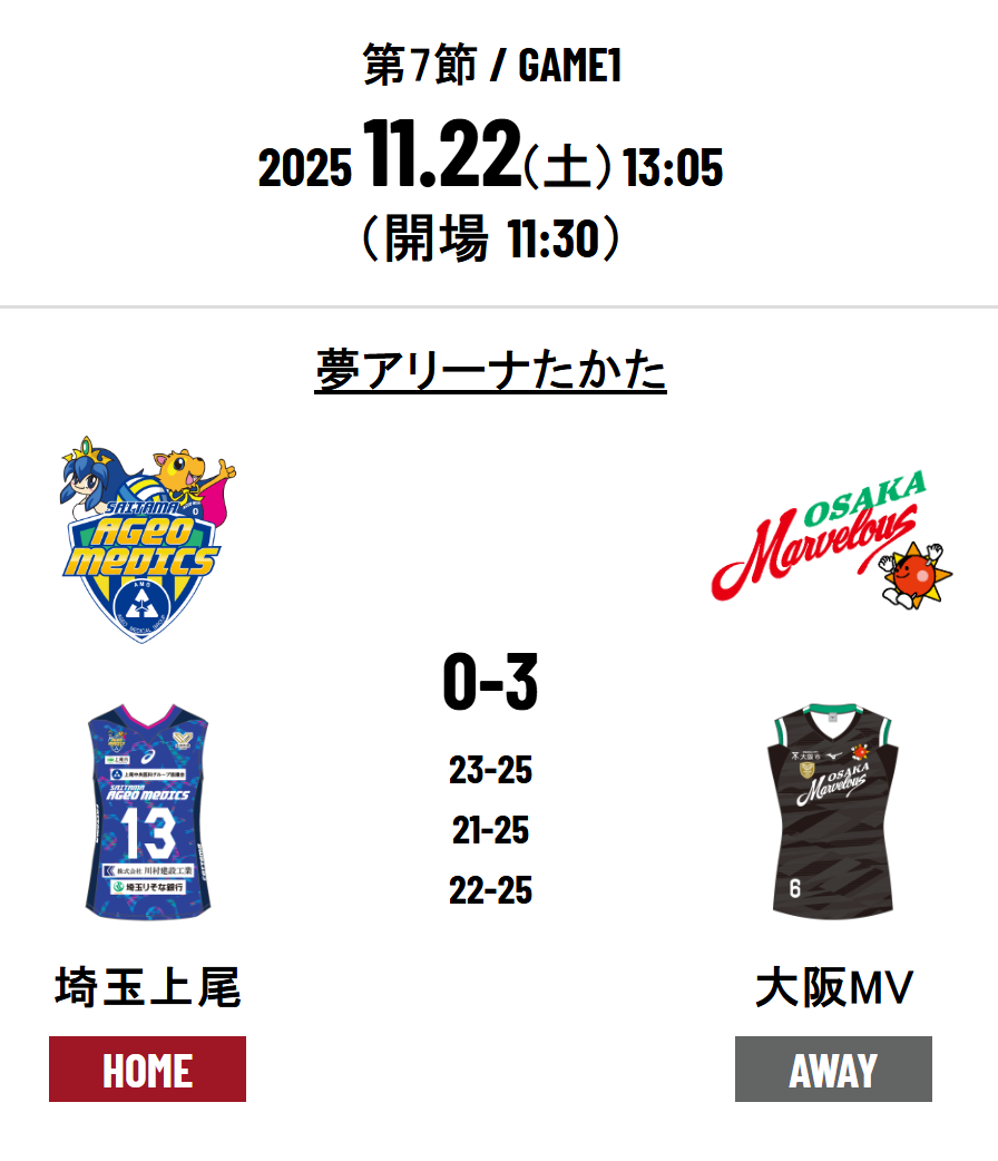 Saitama Ageo Medics 0 - 3 Osaka Marvelous