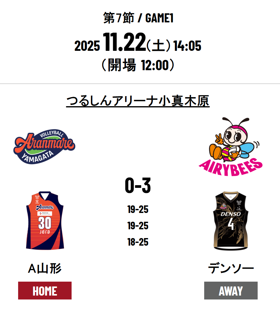 Aranmare Yamagata 0 - 3 DENSO Airybees