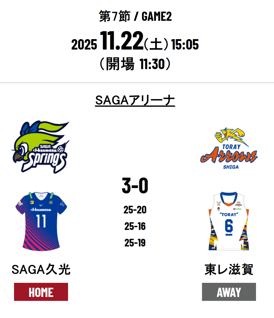 SAGA Hisamitsu Springs 3 - 0 Toray Arrows Shiga (Game 2)