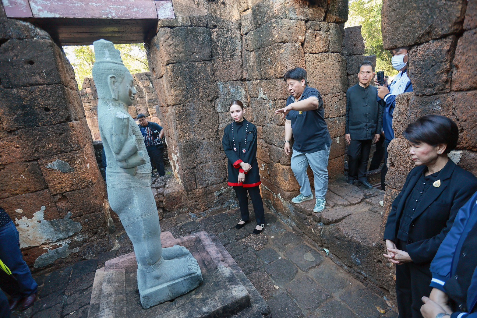 ต่อมาลงพื้นที่อุทยานประวัติศาสตร์เมืองสิงห์ อำเภอไทรโยค หรือที่รู้จักในชื่อ “ปราสาทเมืองสิงห์” โบราณสถานศิลปะขอมแบบบายน อายุกว่า ๘๐๐ ปี ซึ่งสะท้อนความรุ่งเรืองของอารยธรรมในลุ่มน้ำแควน้อย ผ่านปราสาทศิลาแลง และโบราณสถานสำคัญหลากหลาย โดยรัฐมนตรีว่าการกระทรวงวัฒนธรรม ได้รับฟังข้อมูลด้านการอนุรักษ์และแนวทางส่งเสริมการท่องเที่ยว ก่อนเน้นย้ำว่าอุทยานประวัติศาสตร์เมืองสิงห์เป็นแหล่งประวัติศาสตร์ที่สามารถสร้างรายได้และกระจายโอกาสให้ชุมชนได้ด้วยการบูรณาการการบริหารจัดการร่วมกันอย่างมีประสิทธิภาพ