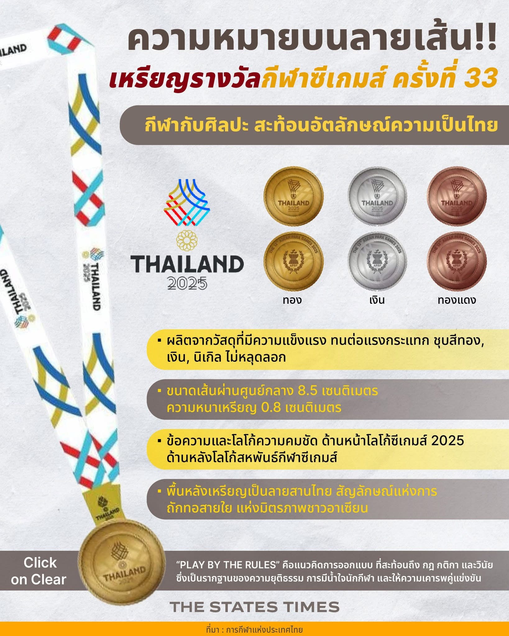 ล่าสุดฝ่ายจัดงานได้เผยโฉมเหรียญรางวัลอย่างเป็นทางการทั้งซีเกมส์และอาเซียนพาราเกมส์ โดยออกแบบอย่างโดดเด่นด้วยการผสมผสานศิลปะไทยกับอารมณ์ของกีฬา ภายใต้แนวคิด “PLAY BY THE RULES” ที่สื่อถึงกฎกติกา วินัย ความยุติธรรม และน้ำใจนักกีฬา พร้อมโชว์อัตลักษณ์ความเป็นไทยอย่างสวยงามและร่วมสมัย