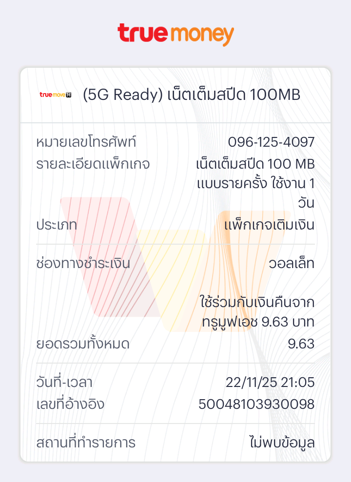 เติมเน็ตเสิร์มแล้วไม่เข้า ทรูมูฟ