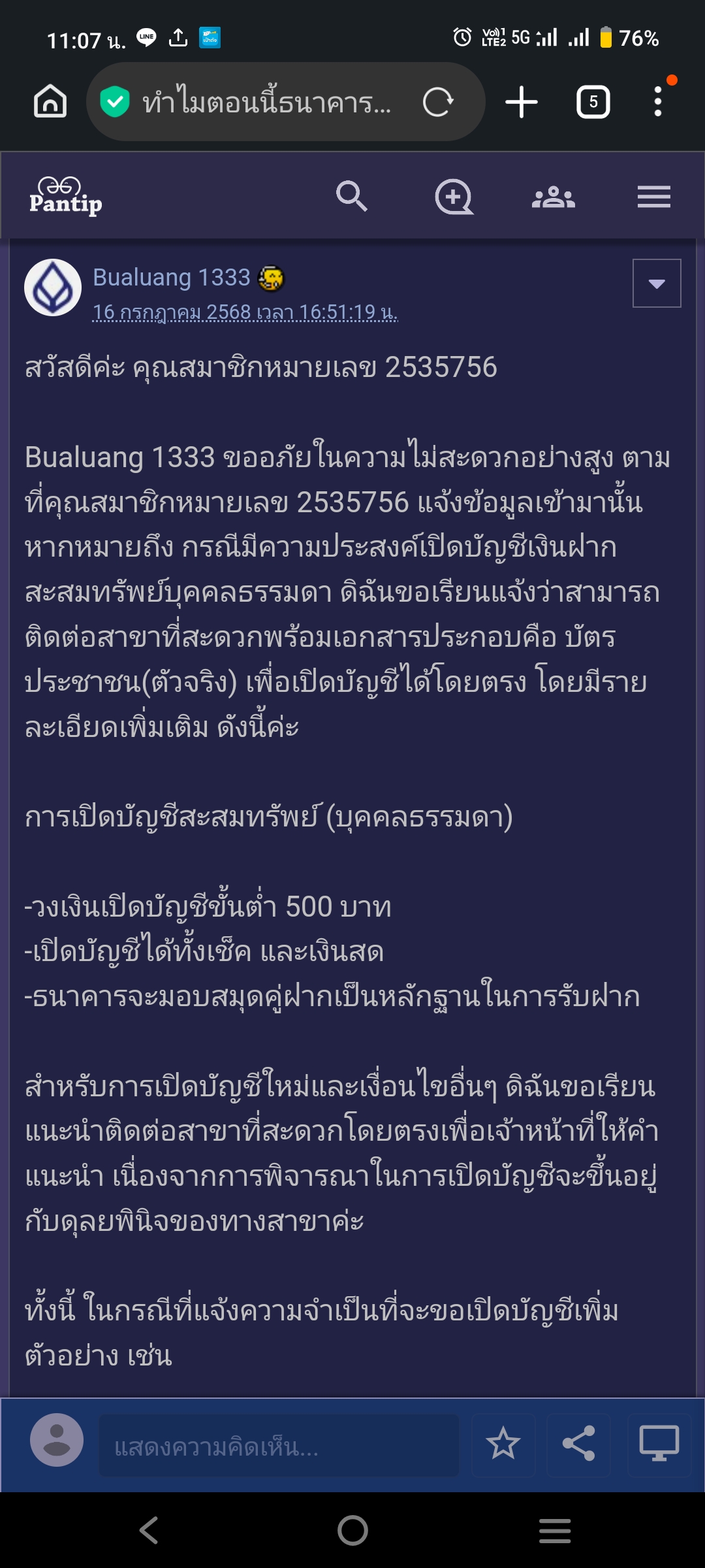 จริงๆแล้วว่าจะไม่พูดหรือไม่คิดอะไรมากแล้ว ไหนๆ พูดเรื่องเปิดบัญชีละ ขอพูดเรื่องการให้บริการด้วยค่ะ รู้สึกว่าการให้บริการของแต่ละสาขาต่างกันมาก