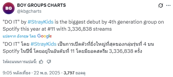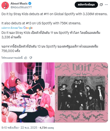 🔥Stray Kids "DO IT" สถิติเปิดตัวที่ยิ่งใหญ่ที่สุดของเจน 4 และ Boy group ที่อันดับ 11 บน Global Spotify 3.336 ล้านครั้ง