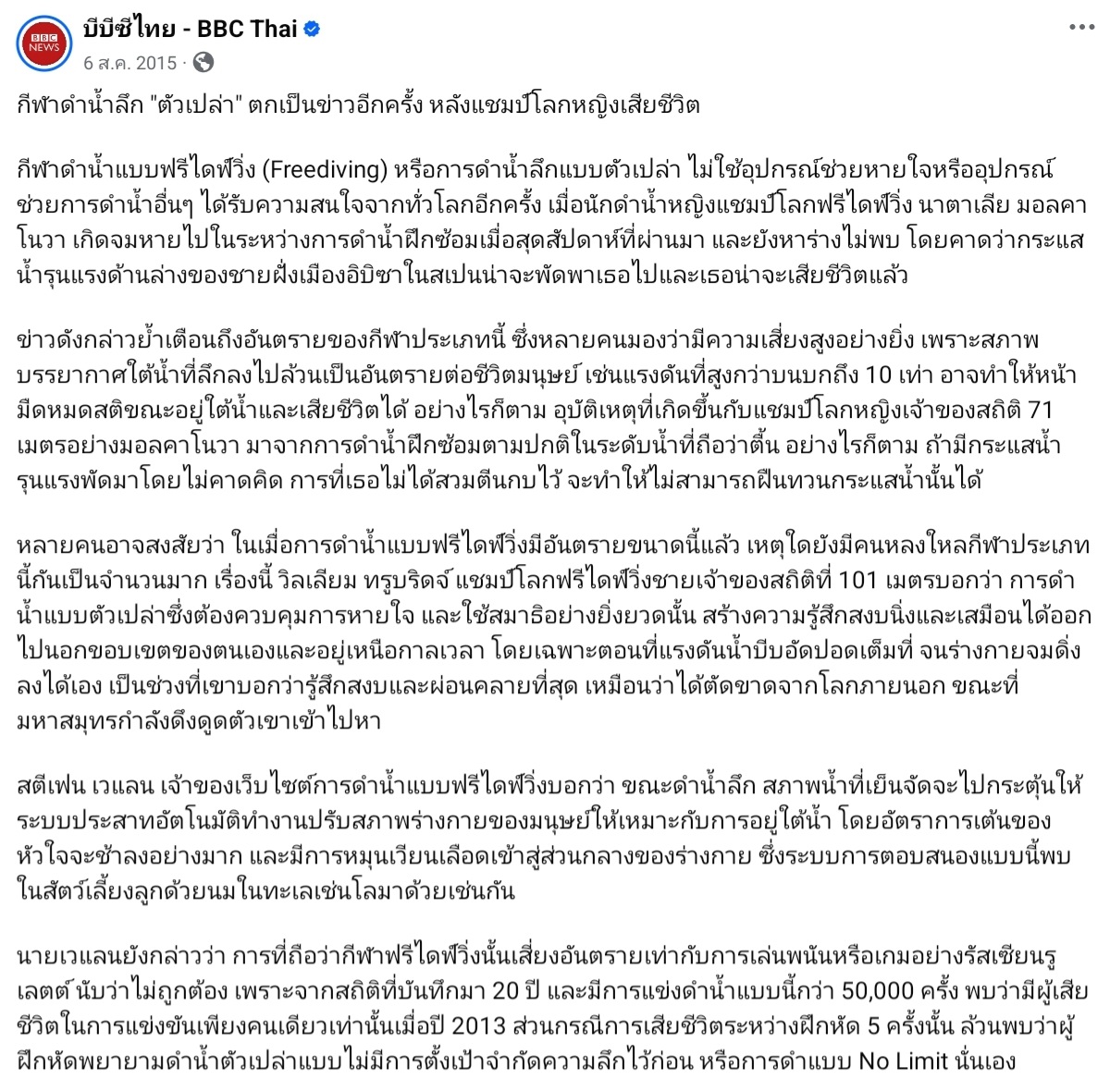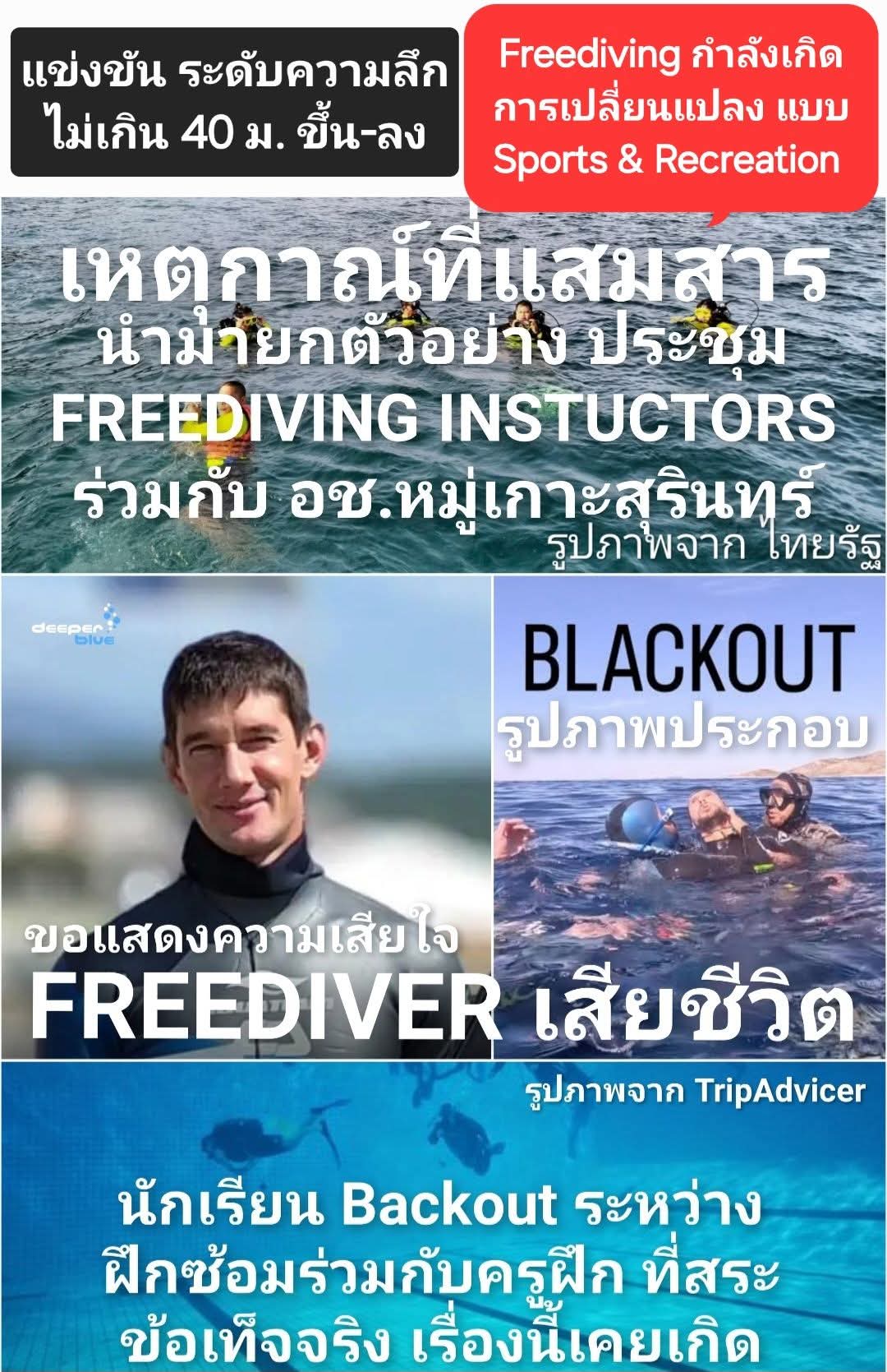 ..... เรามาติดตาม การเสียชีวิตของนัก Freediver ท่านนี้ ที่อาจจะเกิด ความเปลี่ยนแปลงของ กิจกรรม Freediving ทั้งรูปแบบ กีฬา และนันทนาการ