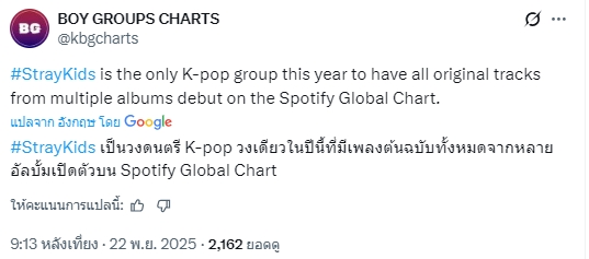 🔥 Stray Kids ครองเกินครึ่งชาร์ต เพลงเดบิวต์ที่ยิ่งใหญ่ที่สุดของกลุ่ม K-pop บน Spotify Global ในปี 2025 ด้วยการครองชาร์ต 9 เพลงใน 16 เพลง - การเปิดตัวที่ยิ่งใหญ่ที่สุด อันดับ1 บอยกรุ๊ป K-Pop ในปี 2025