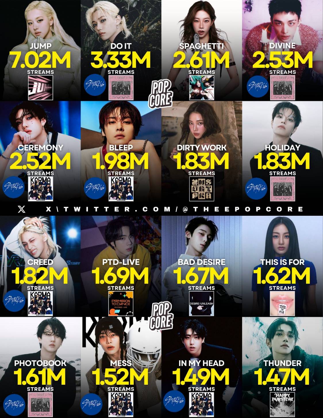 🔥 Stray Kids ครองเกินครึ่งชาร์ต เพลงเดบิวต์ที่ยิ่งใหญ่ที่สุดของกลุ่ม K-pop บน Spotify Global ในปี 2025 ด้วยการครองชาร์ต 9 เพลงใน 16 เพลง