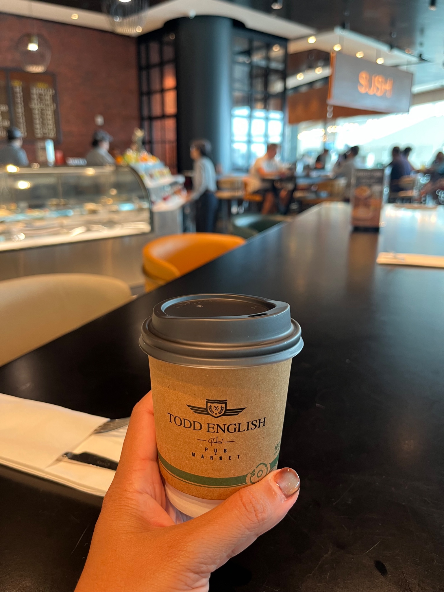 คิดในใจว่าตอนนี้ทำอะไรไม่ได้ ก็คงต้องกินย้อมใจ ก็เลยเลือกร้าน Todd English ซึ่งทั้งหมดนี้สายการบินเป็นผู้รับผิดชอบ โดยใช้ตั๋วโดยสารเก่าและใหม่ยื่นให้ทางร้านสแกนสิทธิ