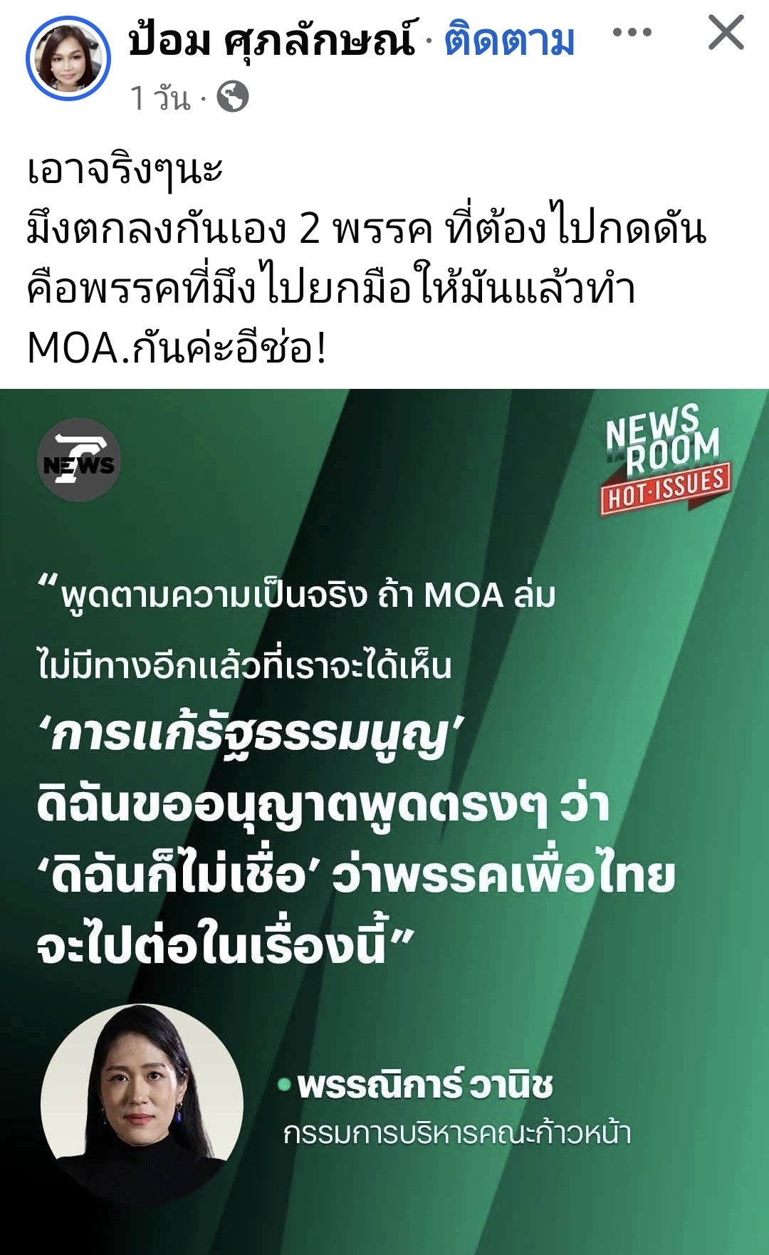 พรรคประชาชน แค้น คลั่ง หนัก, เพื่อไทยมาถูกทางแล้ว