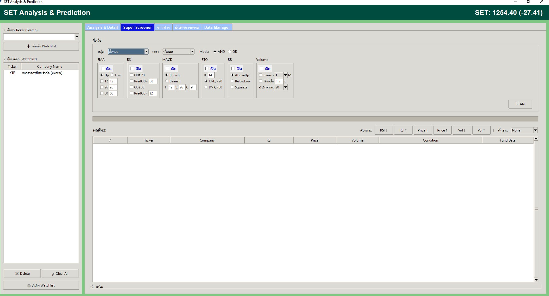 โปรแกรม scan ข้อมูลทางเทคนิคคอล สำหรับหุ้นไทย SET Index