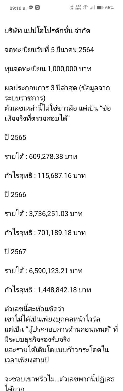 ไม่ธรรมดา! แจ็กแปปโฮ นั่งแท่นผู้ถือหุ้นใหญ่ บริษัททำเงินโตไม่หยุด รายได้ปี 67 ทะลุ 6.5 ล้านบาท ฐานะการเงินโคตรมั่นคง!... .https://www.dailynews.co.th/news/5315008/?fbclid=IwdGRjcAOKcpVjbGNrA4pyf2V4dG