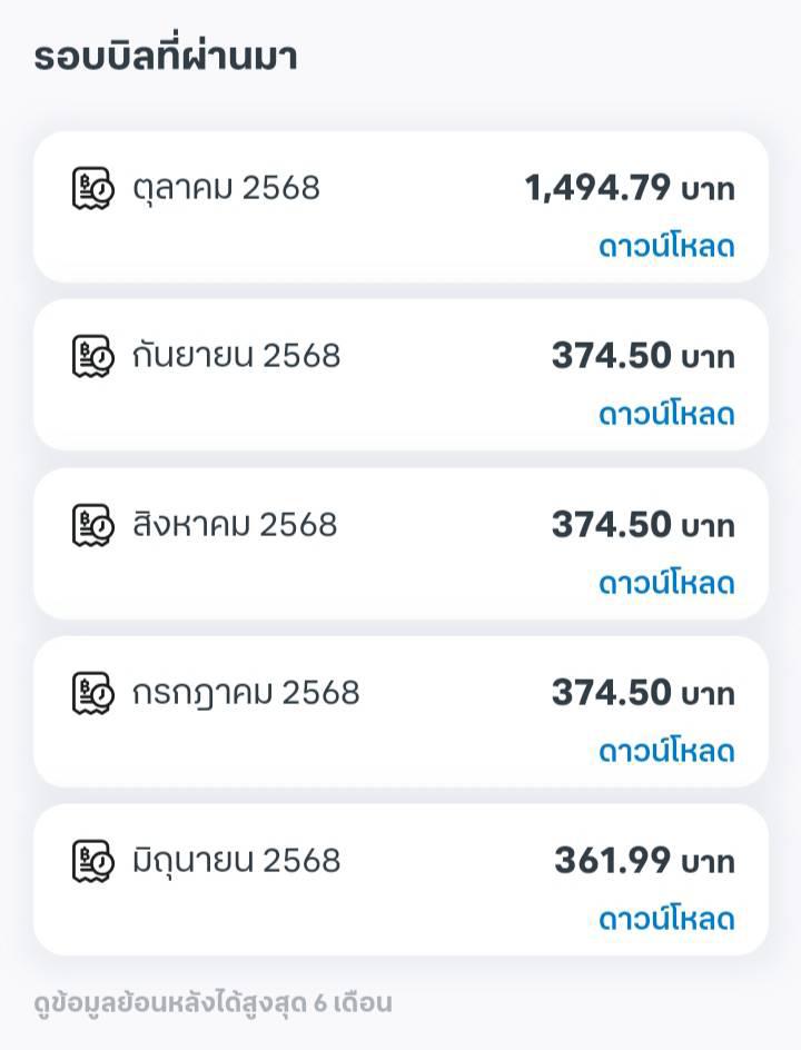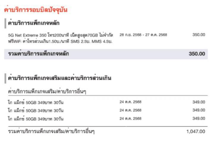 สั้นๆจ่ายทุกเดือน เดือนล่ะ 350-370 พอบิลเดือน พฤศจิกายนมายอด 1,494 บอกบริการส่วนเสริม