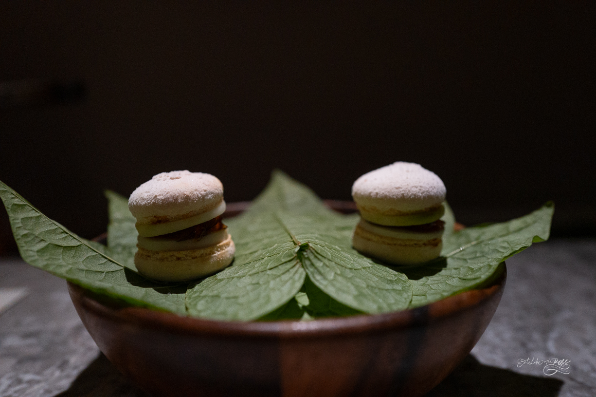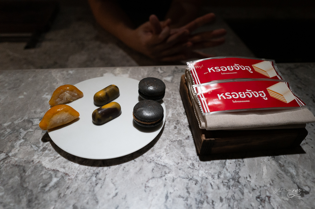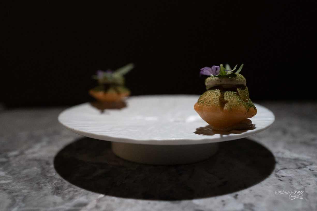 Pattani Salted Fish / Salted fish Crumble คำนี้โดดเด่นด้วยวัตถุดิบขึ้นชื่ออย่างปลากุเลาเค็มจากตากใบ เชฟนำเสนอในรูปแบบมูส ที่เนื้อเนียนนวล ผสานกับแป้งที่ผสมเนื้อปลา รสชาติออกอุมามิกลมกล่อม ไม่ได้เค็มโดดอย่างที่คิด กลิ่นหอมของผงมะกรูดชัดเจนมาก และทิ้งท้ายด้วยรสเผ็ดปลายลิ้นเบาๆ