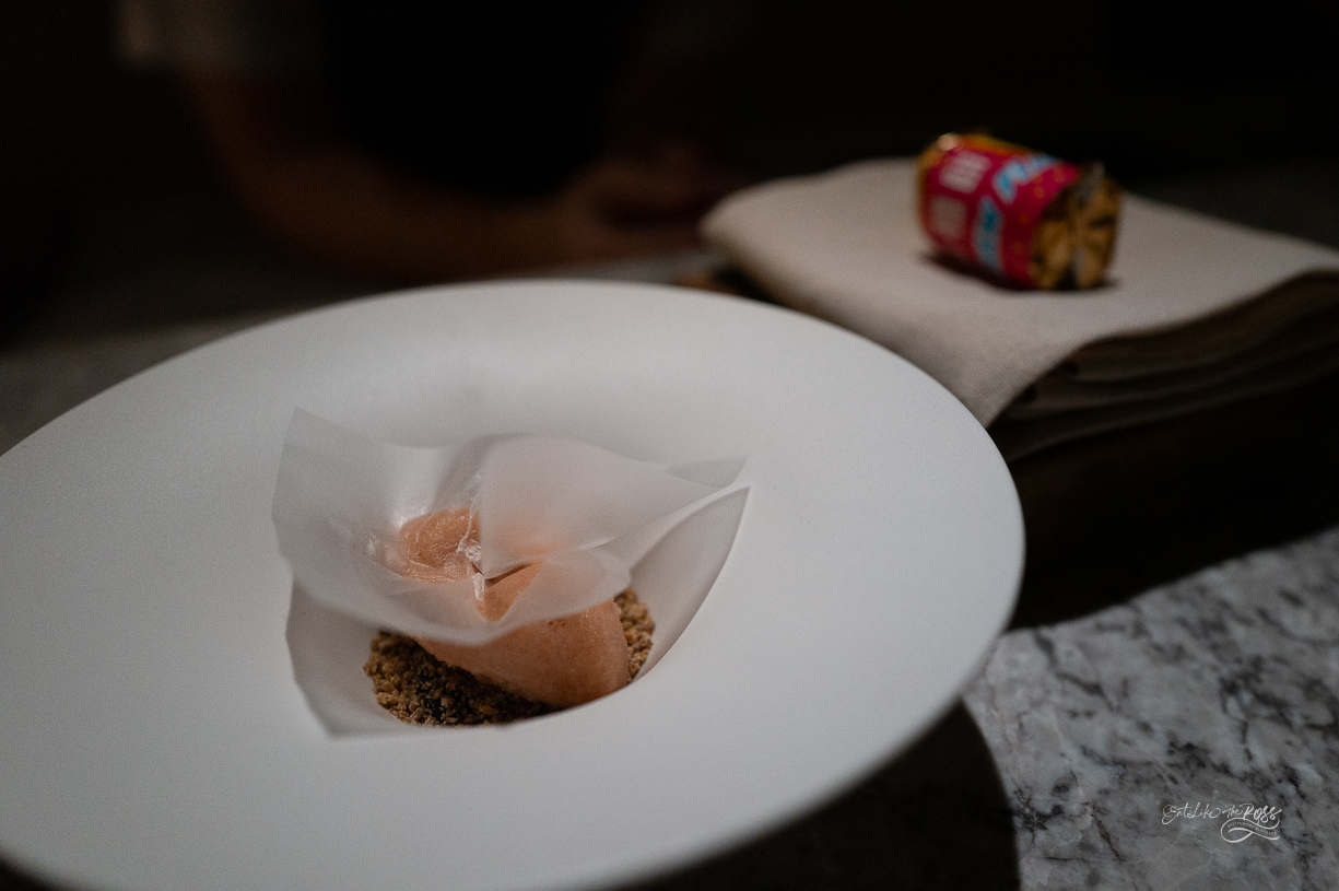 Kim Yong (Hat Yai) Market Flavor- Prune & Plum ของหวานจานแรกคือการปลุกความทรงจำวัยเด็กยุค 90 ด้วยรสชาติของ "ขนมเซียงจา" ที่มักหาซื้อได้จากตลาดกิมหยง หาดใหญ่ นำเสนอเป็นซอร์เบทพรุนและบ๊วย ทานคู่กับแป้งข้าวเจ้าเป็นรสชาติที่ชวนคิดถึงจริงๆครับ