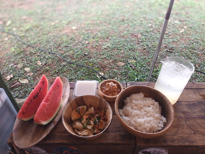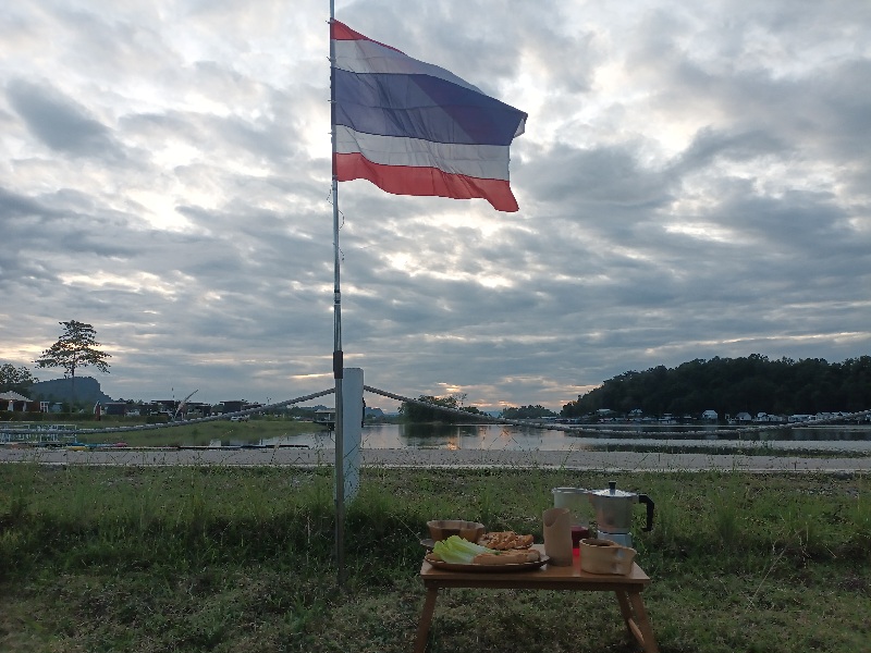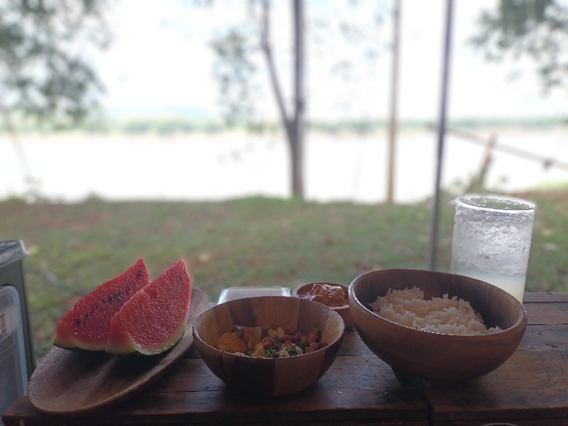วิวอ่างเก็บน้ำข้างหน้าสวยงาม ลมพัดเบาๆ อากาศเริ่มสบาย ฟ้าเริ่มเปิด อาหารง่ายๆ จึงอร่อยขึ้นมามากมาย มันฮีลใจมากครับ