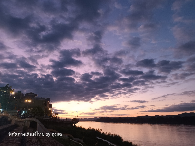 ท้องฟ้าริมน้ำโขงเริ่มเป็นแสงทองสวยงามเหมือนทุกครั้งที่เคยมา เก็บภาพประทับใจ แล้วเดินไปถนนคนเดิน เริ่มปวดหน้าแข้งอีก เดินช้าๆ นั่งพักบ้างตามเหมาะสม ร้านแผงลอยเปิดได้ 20% มั้งครับ ส่วนร้านห้องแถวเปิดปกติ