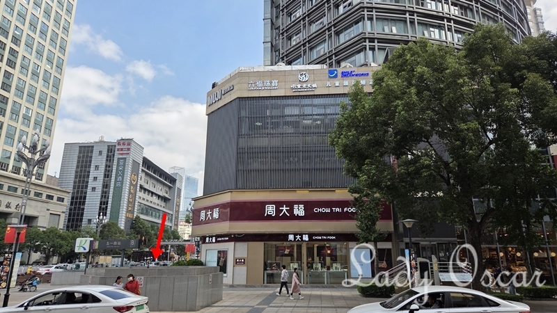 การเดินทางก็นั่งรถไฟใต้ดิน ลงสถานี Wuyi Rd. ออก Exit B ขึ้นบันไดเลื่อนมา (ตรงลูกศรสีแดง)แล้วให้กลับหลังหัน เดินผ่านหน้า Starbucks มา