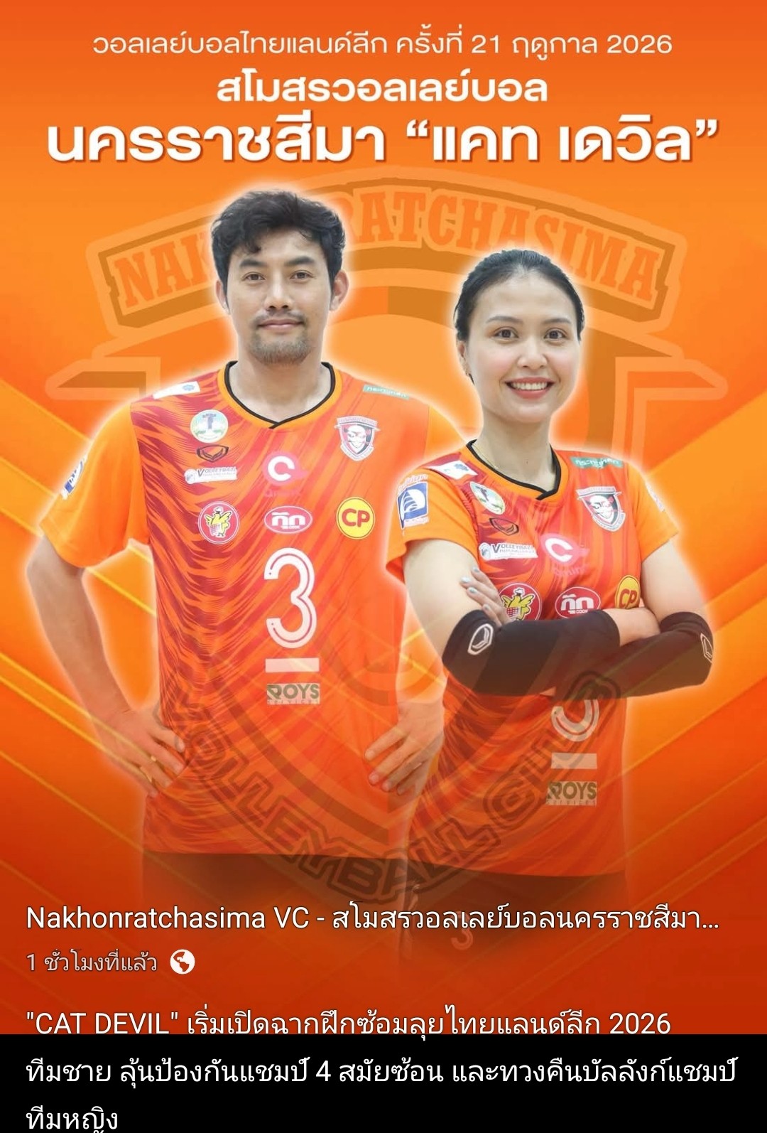 สโมสรวอลเลย์บอลนครราชสีมา "แคท เดวิล" เริ่มเปิดฉากลงสนามฝึกซ้อม เตรียมความพร้อมเพื่อจะลงทำการแข่งขันวอลเลย์บอลอาชีพไทยแลนด์ลีก ครั้งที่ 21 ฤดูกาล 2026 ที่จะเริ่มระเบิดศึกทำการแข่งขันในวันที่ 8 มกราคม 2569 อีกทั้งเมืองย่าโม ยังจะรับหน้าที่เป็นเจ้าภาพจัดการแข่งขันถึง 3 สัปดาห์