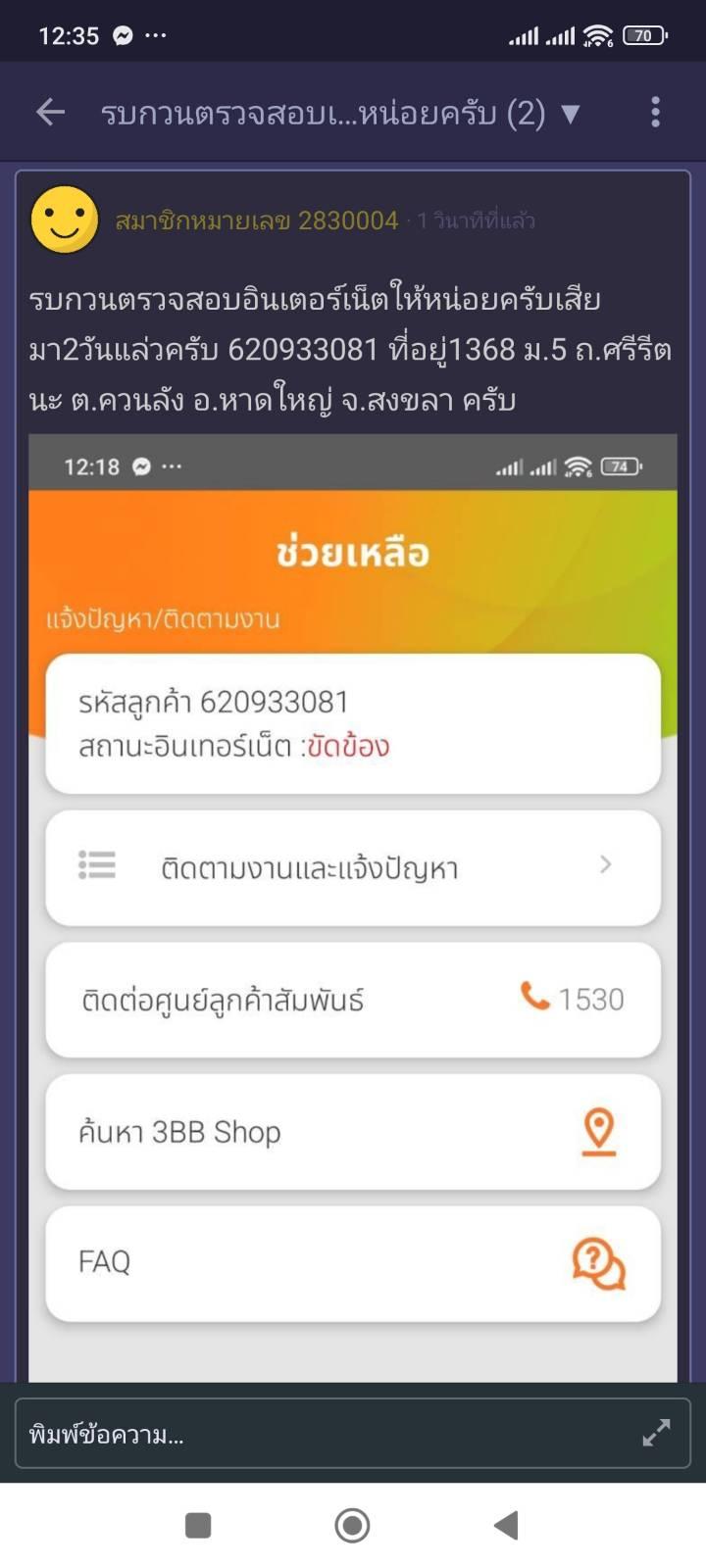 เน็ต3bbขัดข้องมา2วันแล้วครับ