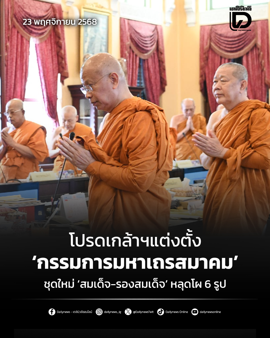 วันที่ 23 พ.ย. 2568 ผู้สื่อข่าวรายงานว่า เว็บไซต์ ราชกิจจานุเบกษา เผยแพร่พระบรมราชโองการ ประกาศแต่งตั้งกรรมการมหาเถรสมาคม (มส.) ความว่า พระบาทสมเด็จพระปรเมนทรรามาธิบดีศรีสินทรมหาวชิราลงกรณ พระวชิรเกล้าเจ้าอยู่หัว มีพระบรมราชโองการโปรดเกล้าโปรดกระหม่อมให้ประกาศ ว่า