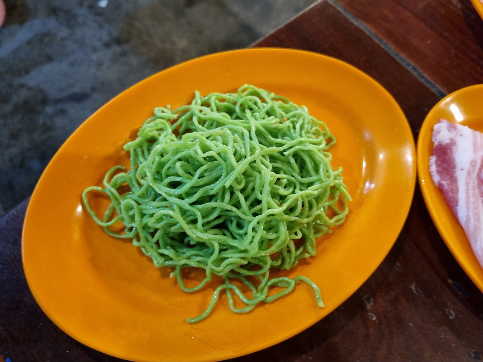 เส้นหมี่หยก จานเส้นคู่บารมีของร้านหมูกะทะ ที่นี่ไม่ค่อยจะมีความมันเท่าไหร่เพราะลวกสด ไม่มีคลุกกระเทียมเจียวแต่อย่างใด