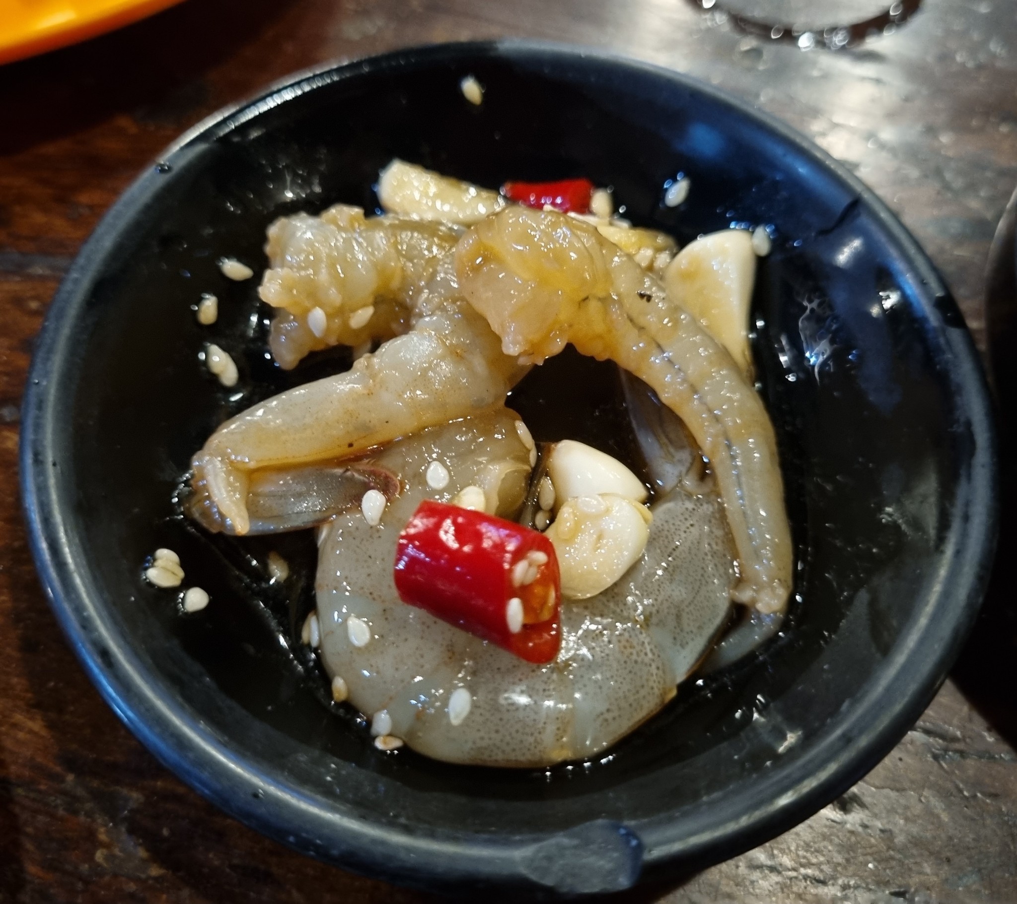 กุ้งดอง น้ำดองไม่หวานเท่าไหร่ กรอบและข้นในระดับที่พอกินดิบได้