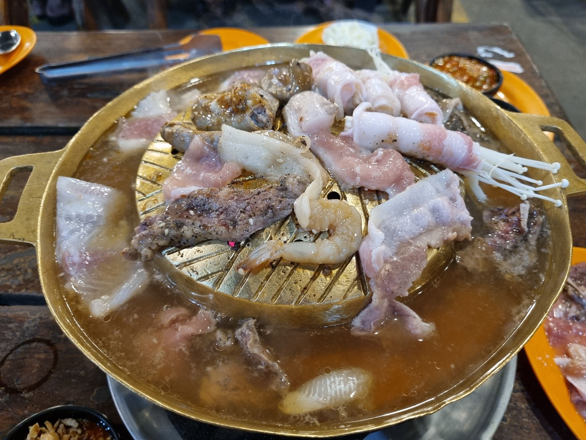 เนื้อหมูรสและคุณภาพก็ใกล้เคียงกับร้านหมูกะทะทั่วไป ไม่หนีไปกว่ากันมาก มีบางชิ้นเหมือนจะเก่าๆ ของทะเลส่วนมากเนื้อน้อย
