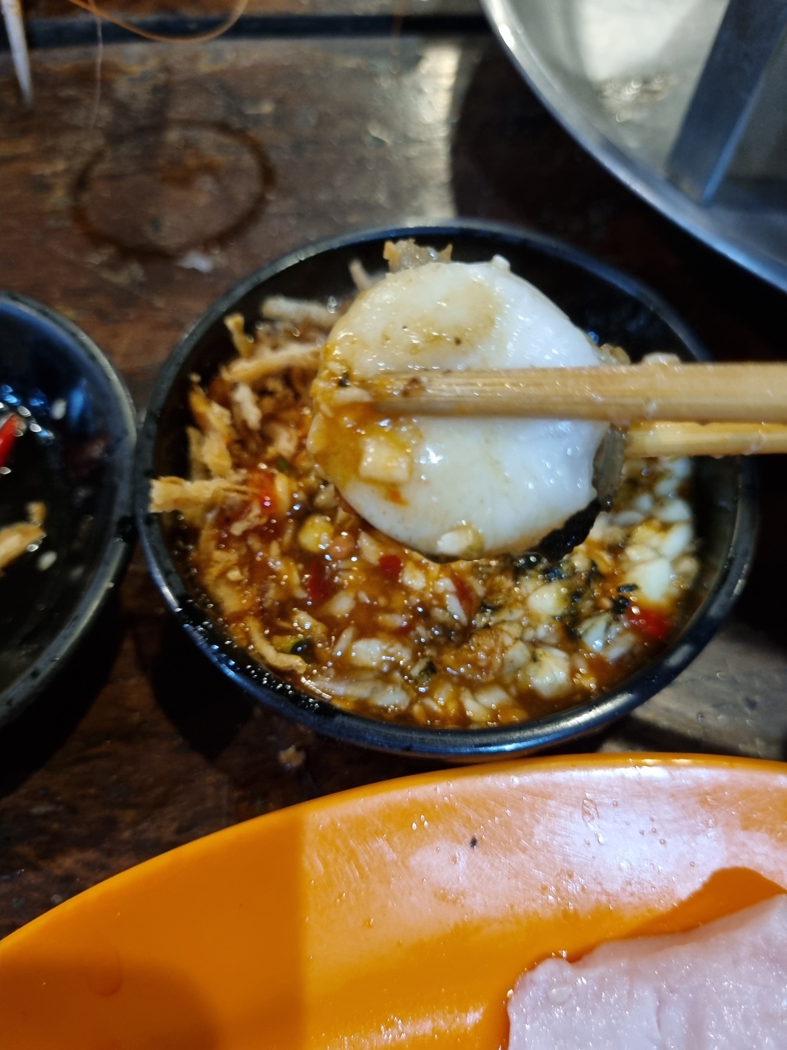 จึงไม่สามารถเข้าถึงรสชาติได้ มีเพียงหอยเชลล์เท่านั้นที่คุณภาพคับแก้ว ชิ้นใหญ่และเด้งกรอบ เกินราคา น้ำจิ้มออกหวานๆคล้ายบาร์บีคิวผสมซอสสุกี้