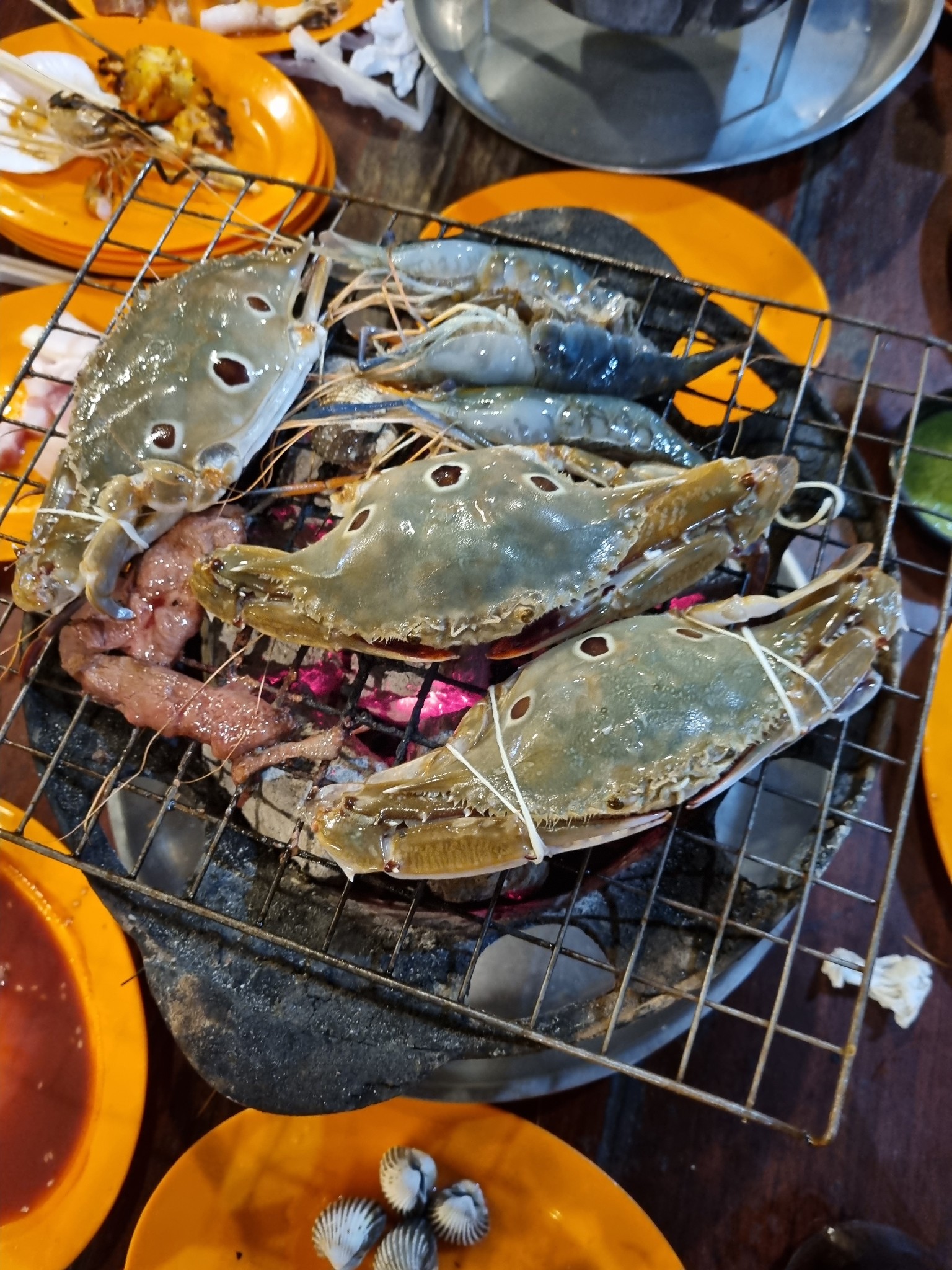 น้องๆเขาอยากกินปูเลยเอามาย่าง ผมก็มีแอบจิ๊กมาแคะกินเล่นอยู่ตัวนึง เนื้อน้อยดังคาด