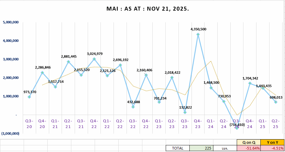 https://pantip.com/topic/43702736 กราฟสรุปผลการดำเนินงาน 20 ไตรมาส : ไตรมาส 3 ปี 2563 - ไตรมาส 2 ปี 2568 (เรียงตามอักษร) เพียงวันที่ 22 สิงหาคม 2568