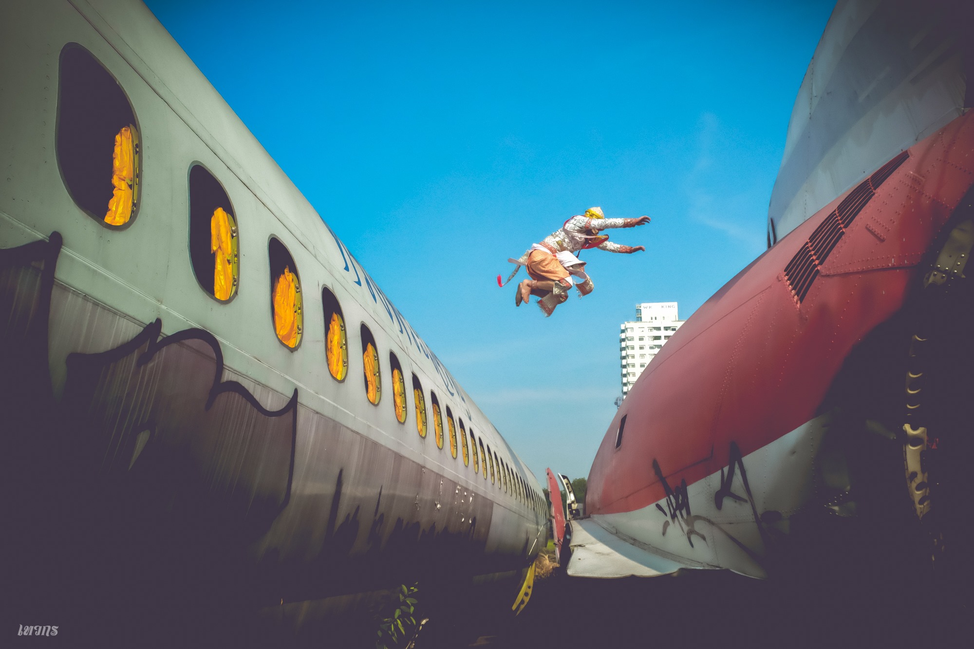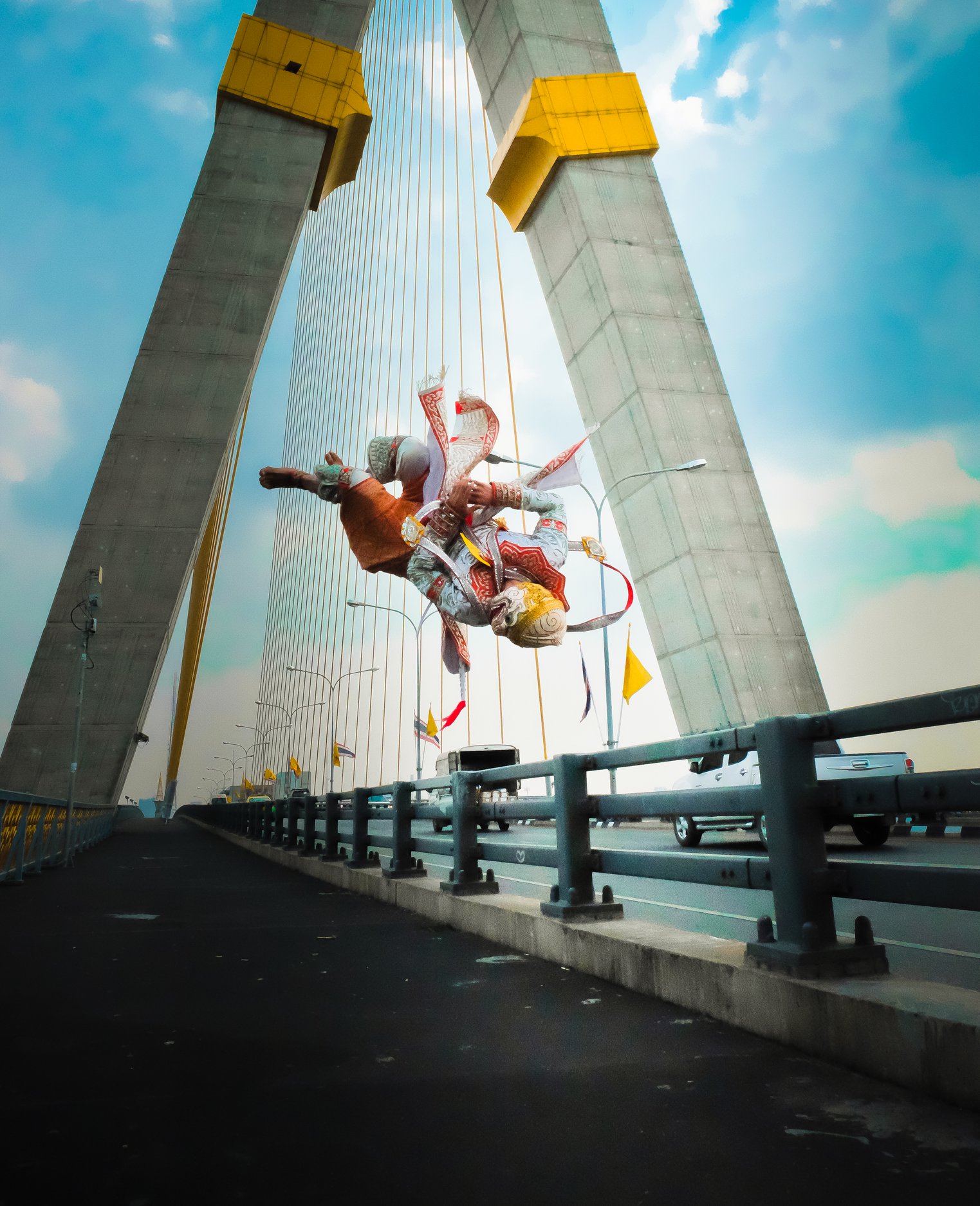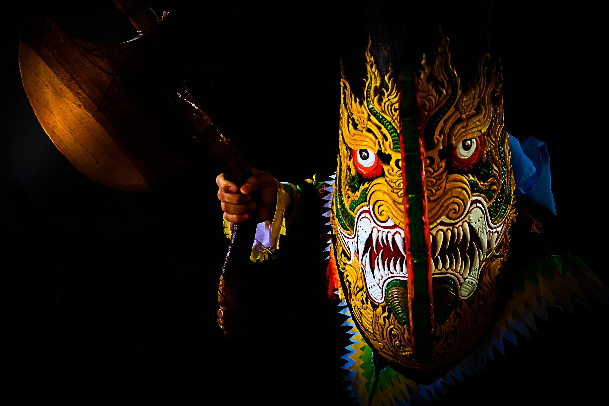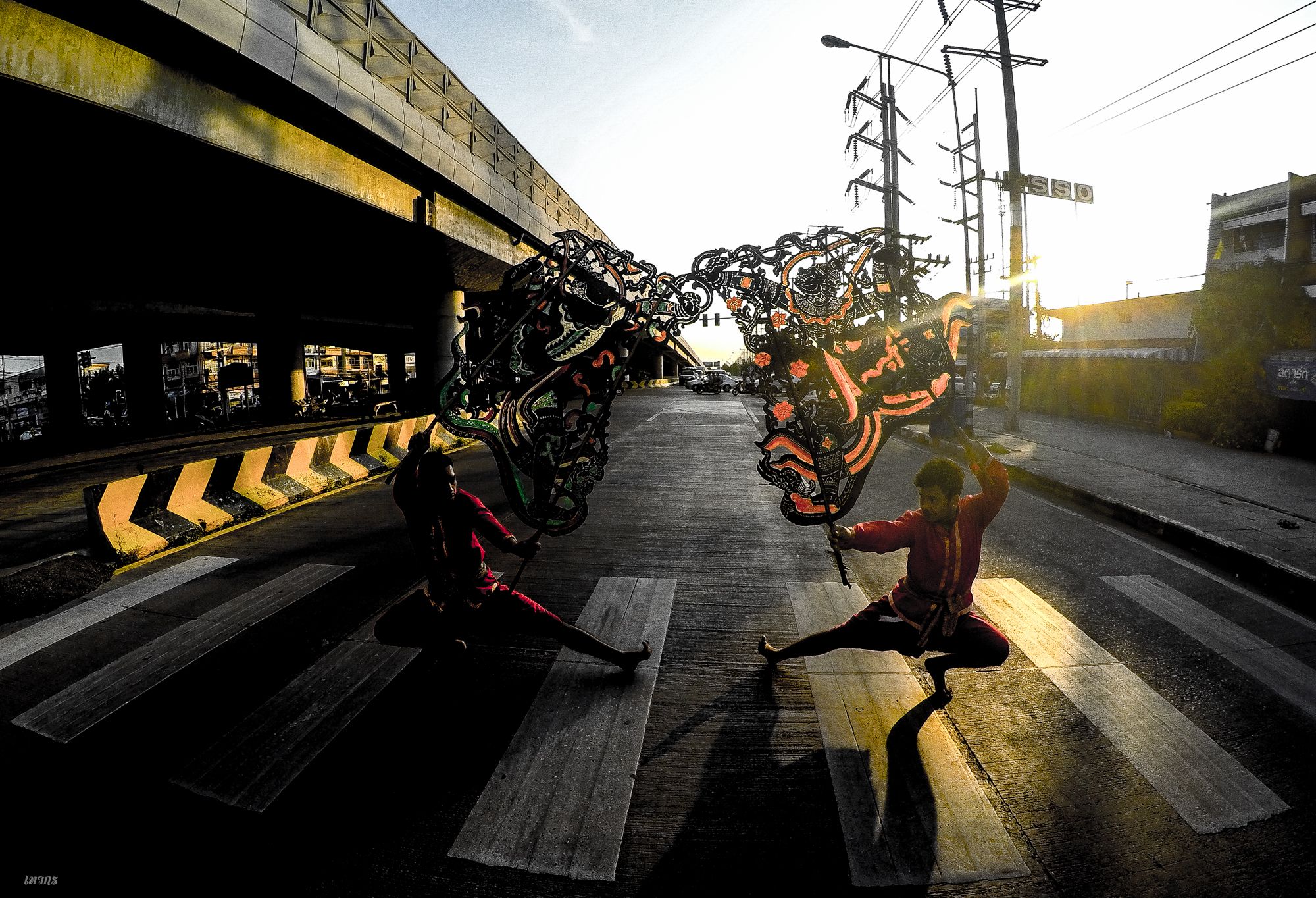 เซ็ทที่ 6 "หนังใหญ่" จริงๆก็ต่อยอดมาจากทศกัณฐ์อีกนั่นแหละ เพราะพยายามหาว่า มีศิลปวัฒนธรรมไหนอีกไหม ที่หาชมได้ยาก ก็ค้นไปเรื่อยๆแล้วก็ได้เจอกับหนังใหญ่ แต่ก็บอกเลยว่า ตอนนั้นนึกไอเดียไม่ออกจริงๆว่าจะถ่ายออกมายังไง เพราะมันมีเงื่อนไขของแสงเข้ามาเกี่ยวข้อง ก็เลยได้มาแบบที่เห็นเลยครับ (มีคนเคยมาคอมเม้นต์ว่าก๊อปไอเดียมาจากทศกัณฐ์ด้วยนะภาพนี้)