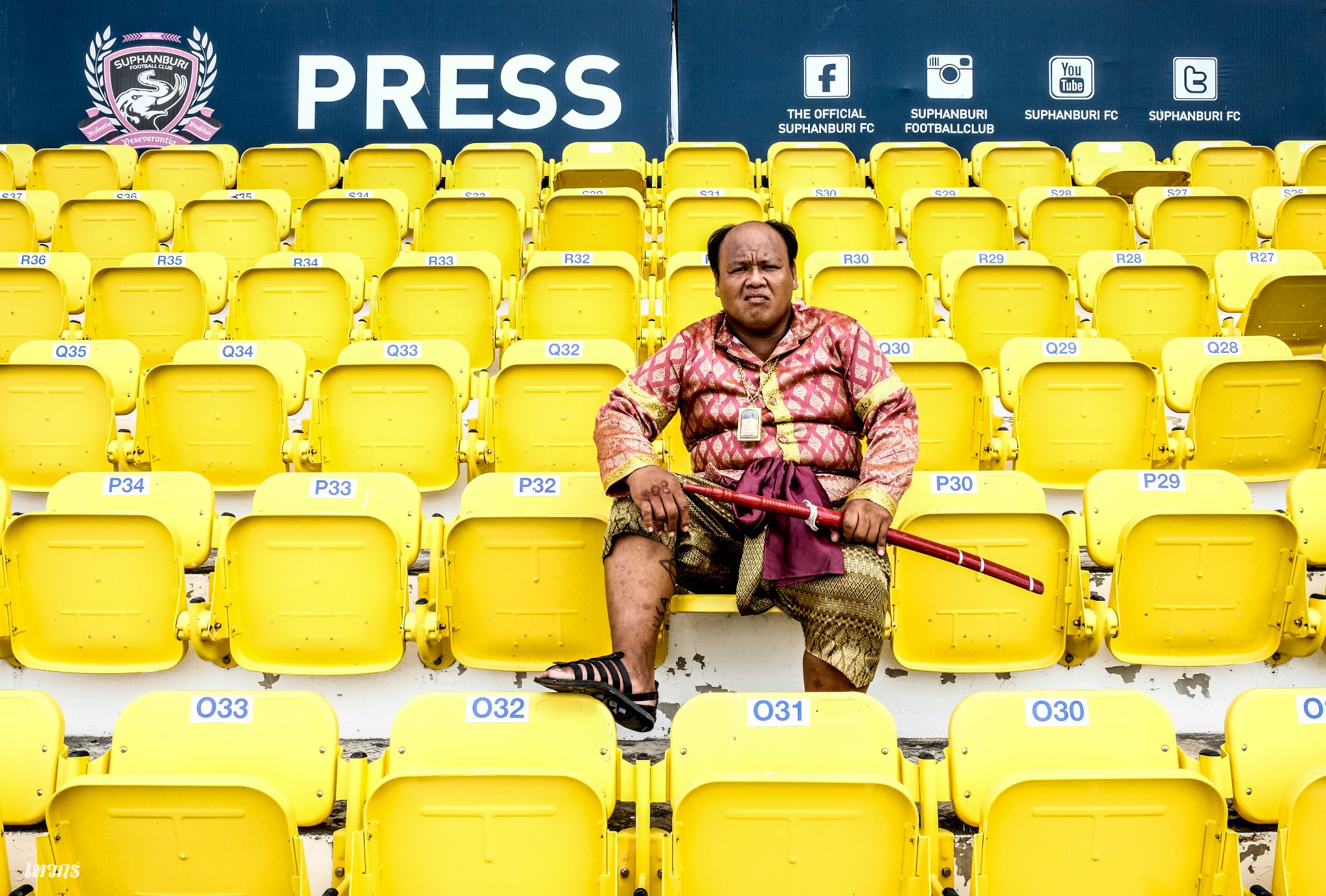 เซ็ทที่ 8 "ขุนช้างเชียร์บอล" จริงๆถ่ายไว้หลายภาพ แต่ชอบอยู่ภาพเดียว 555 ไอเดียเกิดจากตอนนั้นกระแสฟุตบอลกำลังมา แล้วเราก็เชียร์ทีมสุพรรณบุรี เลยอยากหาใครสักคนมาเป็นตัวแทนของแฟนพันธ์ทีมนี้ ก็ถ้าจะมีใครสักคนเหมาะก็ต้องขุนช้างนี่แหละนะ