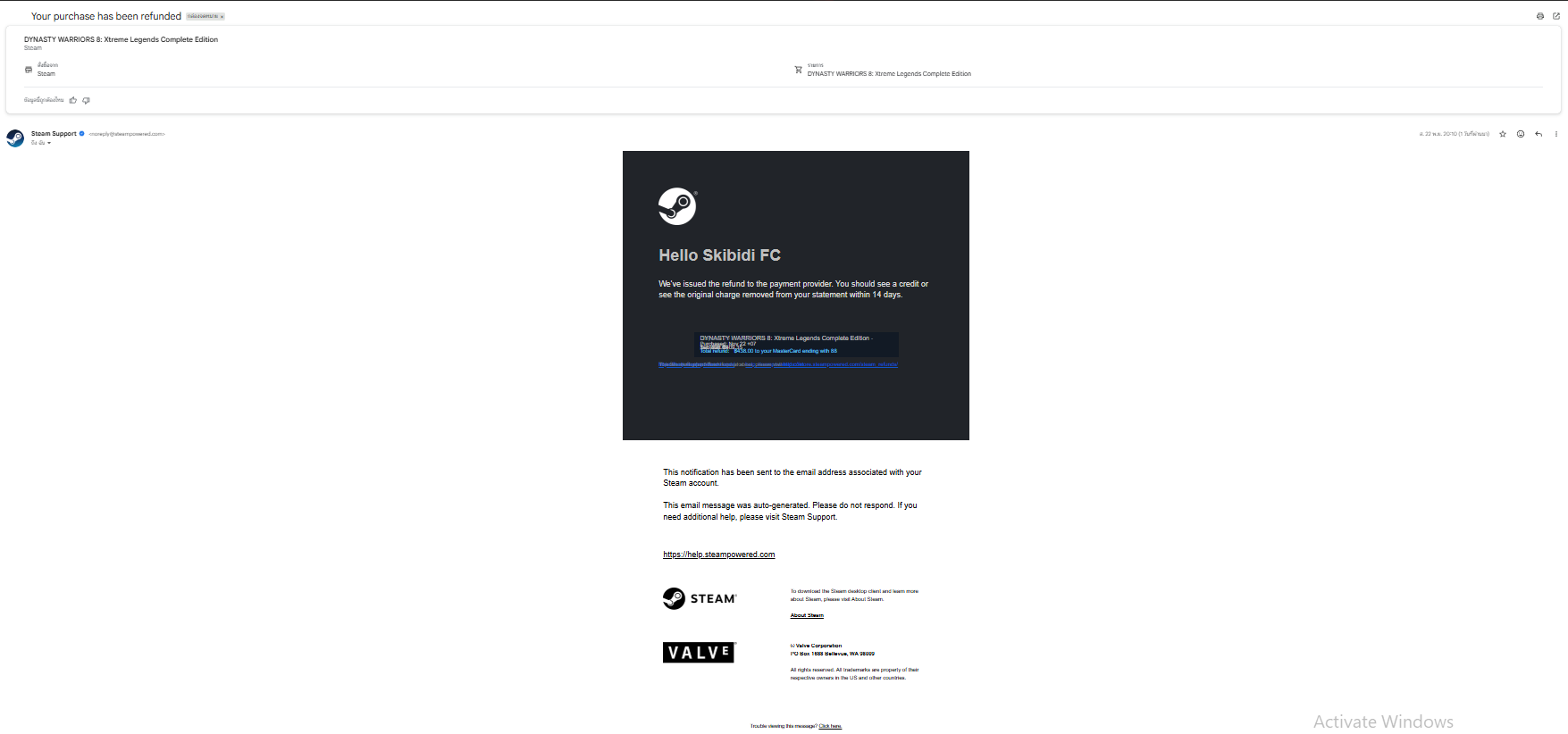 ผม Refund เกมใน Steam แล้วทาง Steam บอกว่าคืนเงินให้ provider แล้ว