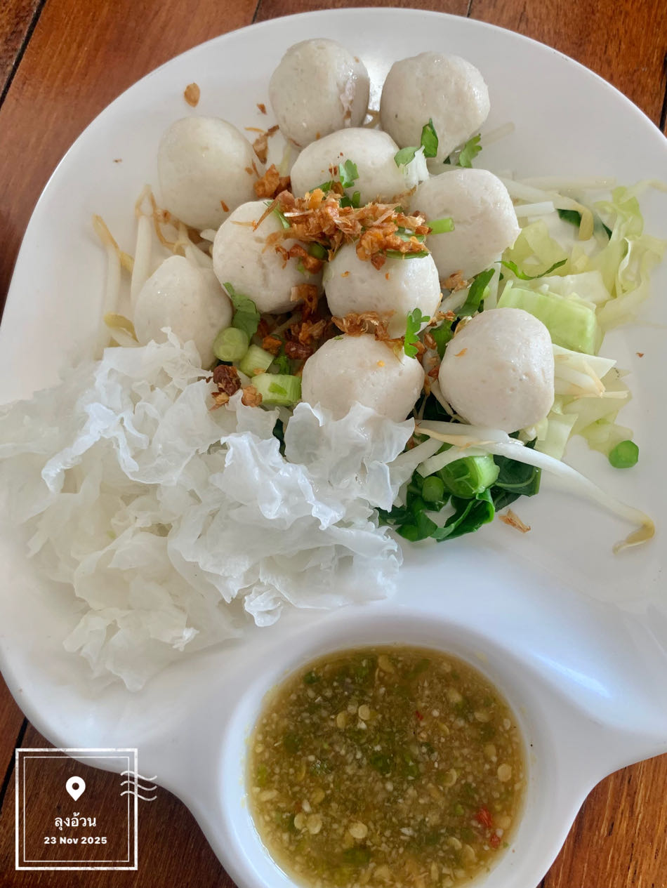 - อาหาร (ลูกชิ้นปลาลวกจิ้ม) : 60 บาท