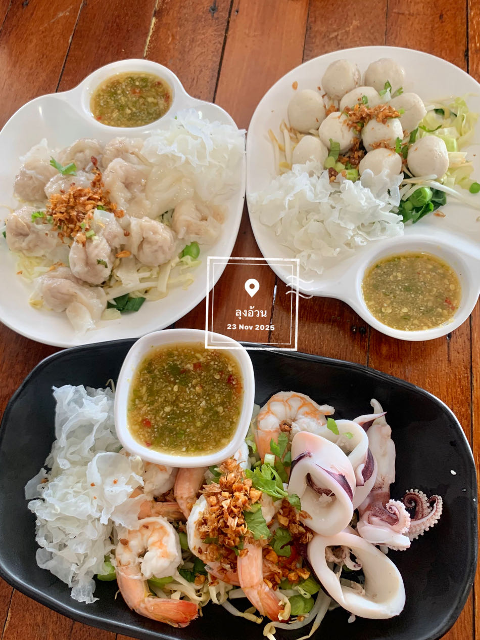 - อาหาร (กุ้งหมึกลวกจิ้ม) : 120 บาท