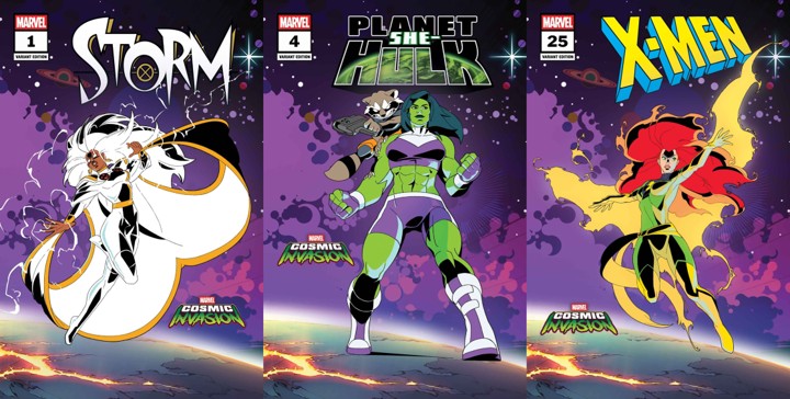 ธีมปก variant เดือนนี้ได้แก่... Hell's Kitchen!! ซึ่งวาดโดยคนวาดเดียวกันหมด แต่ไม่มีตัวอย่างซักภาพ ธีมรองที่น่าจะเป็นของกลุ่มนักวาด Stormbreakers ชื่อ Black Panther เห็นตัวอย่างแค่ภาพเดียว ดังนั้นภาพแปะกระทู้นี้จึงเป็น... Marvel Cosmic Invasion ต่อจากเดือนที่แล้วนั่นแหละ!!