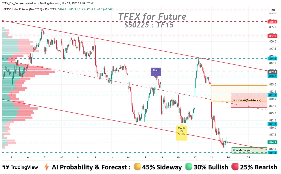 มีโอกาสสูงที่ราคาจะ “เด้ง–ย่อสลับ” แถว 811–821 ก่อนเลือกทาง