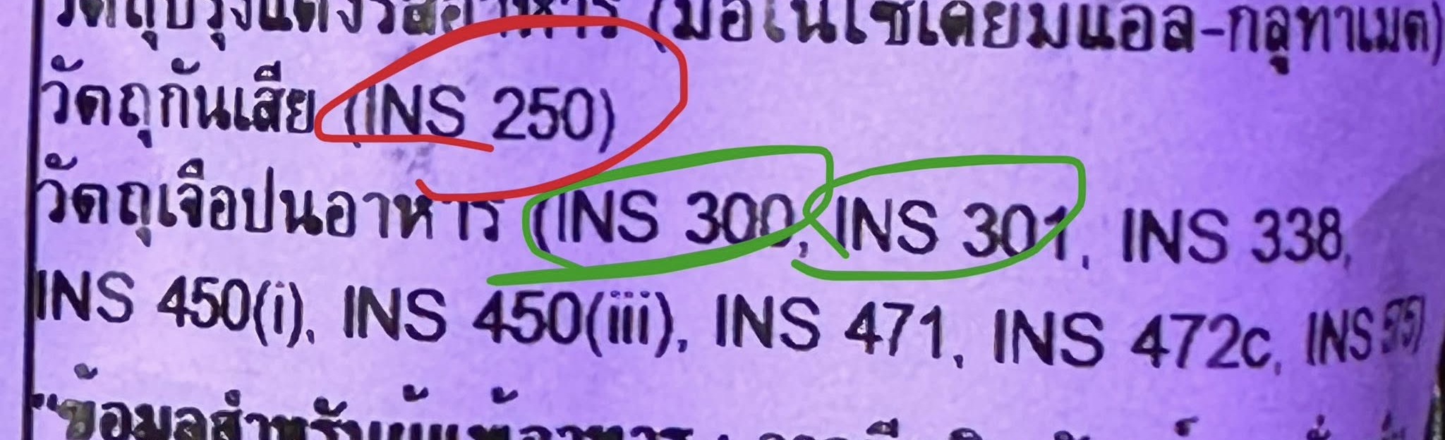1) เช็กฉลากว่ามี INS301 / INS316