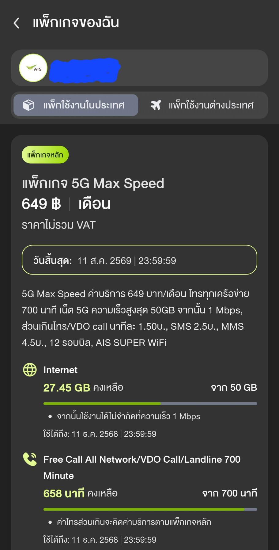 ผม -- กูใช้ ais เดือนละ 700 50gb + อีกเบอร์ 499 เน็ต 25gb + ซิมราบปี 2000 กว่าบาท จะหมดปีละ ใช้มานาน 16ปี แห่งความหลัง