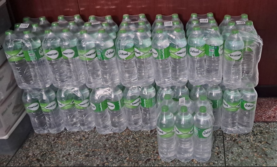 เวลาจะซื้อน้ำขวด เลยมักจะสั่งทีละล็อตใหญ่ เพื่อให้คนส่ง ช่วยบริการยกวางให้