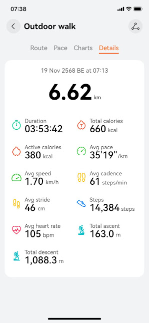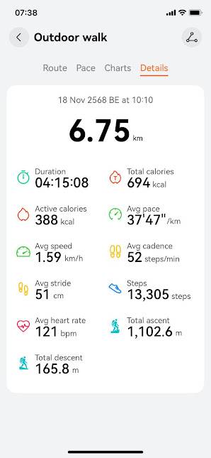 เช้ามามึนหัว เบลอๆ ฝนหยุดแล้ว ลมเบาแล้ว ก็กินข้าวเหนียวไก่ที่เอามาเมื่อวาน กินได้นิดหน่อย เพราะมันเช้ามาก และมันแข็ง เย็นชืดเลย โมงเช้าก็เดินลง คนแรกเลย ตอนลงก็ได้ Pole ช่วยชีวิตไว้ เพราะขาลงแบกเป้ลงเอง 11 กก. ไม่ได้จ้างลูกหาบเพราะรีบลงแล้วต้องขับรถกลับบ้านอีก 500 กม . รอลูกหาบไม่ได้ ถ้าไม่มี pole คงตะคริวกินหน้าขา หรือเข่าพังก่อนแน่ ระหว่าเดินลงก็มีเด็กๆที่เดินสวนขึ้นมาชมตลอดทาง มีเรียกพี่ อา ลุง ป๋า มีทุกแบบ ยิ่งรู้ว่าผม 60 แล้วยิ่งตาโต ตอนขาขึ้นมีเด็กผู้หญิงคนนึงกำลังไลฟ์คุยกับแม่ เธอบอกเลย แม่ดูนี่ ลุงแก 60 แล้วแกยังเดินเร็วกว่าหนูอีก แม่ยังไม่ 50 เลยเอาแต่นอน ผมก็บ๊ายบายให้กล้องแล้วบอกว่าออกกำลังบ้างนะครับ แล้วก็เดินแซงไป พอลงมาแล้วก็อาบน้ำ เปลี่ยนชุด กินข้าว แล้วก็ออกเดินทาง ฟ้าครึ้มมาเรื่อยๆจนออกจากนครสวรรค์ ก็ฟ้าเปิด แดดเปรี้ยง มาถึงบ้านเอา ทุ่มตรง กินข้าวอาบน้ำ นอน หัวถึงหมอนปุ๊บ สลบไปเลย เช้ามาค่อยมารื้อเป้ ซักผ้า สภาพร่างกาย ก็ปวดบ่าเพราะจัดเป้ไม่ดี น้ำหนักลงบ่ามากกว่าลงเอว กับปวดหน้าขานิดหน่อย ถ้าไม่ใช้ pole คงลุกไม่ขึ้นแล้ว รื้อของไปก็เริ่มหาเรื่องอีกแล้ว ทริปต่อไปจะไปที่ไหนดี ถ้าไปที่ไหนแล้วจะมาเล่าให้ฟังอีกครับ สวัสดี