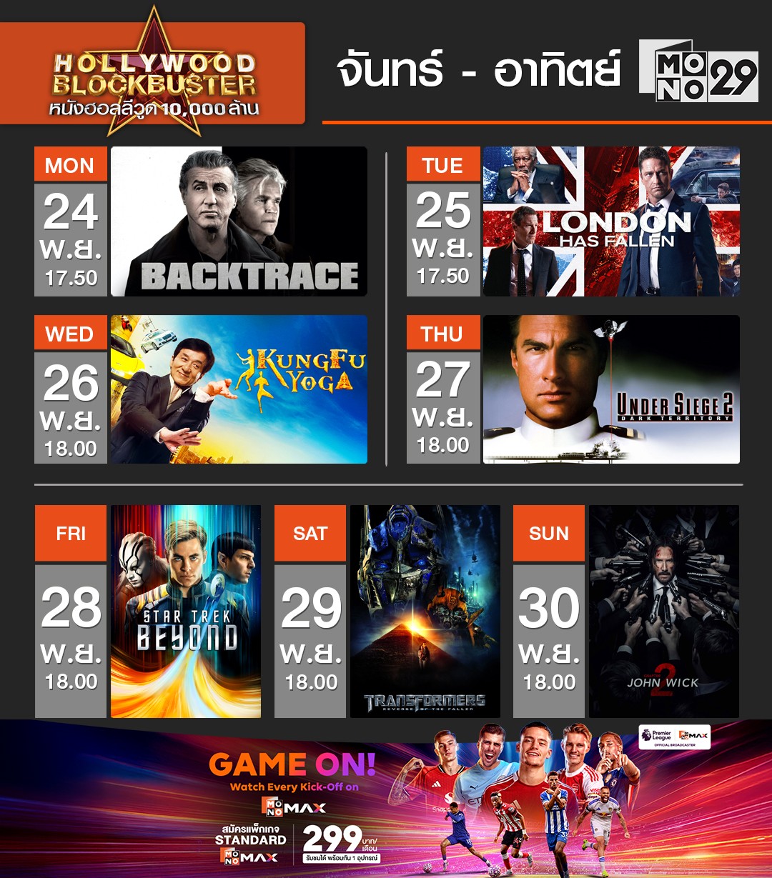 Hollywood Blockbuster หนังฮอลลีวูด 10,000 ล้าน วันที่ 24 - 30 พฤศจิกายน เวลา 18.00 น. ทางช่อง MONO29