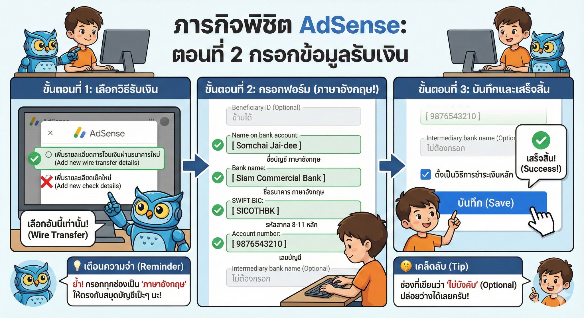 สอบถามเกี่ยวกับการกรอกรายระเอียดการชำระเงินของ google adsense